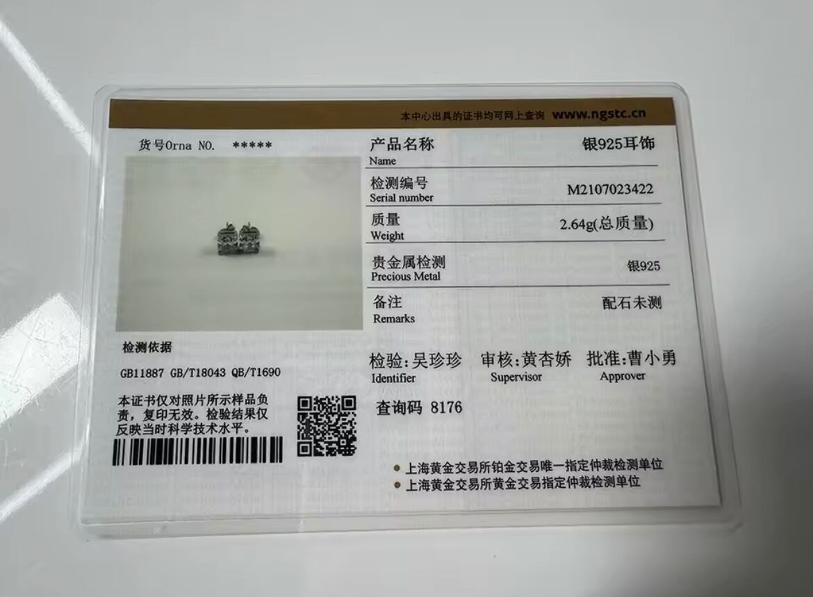 付属品:GRA鑑定書一式/S925金属検査証/専用ジュエリーボックス