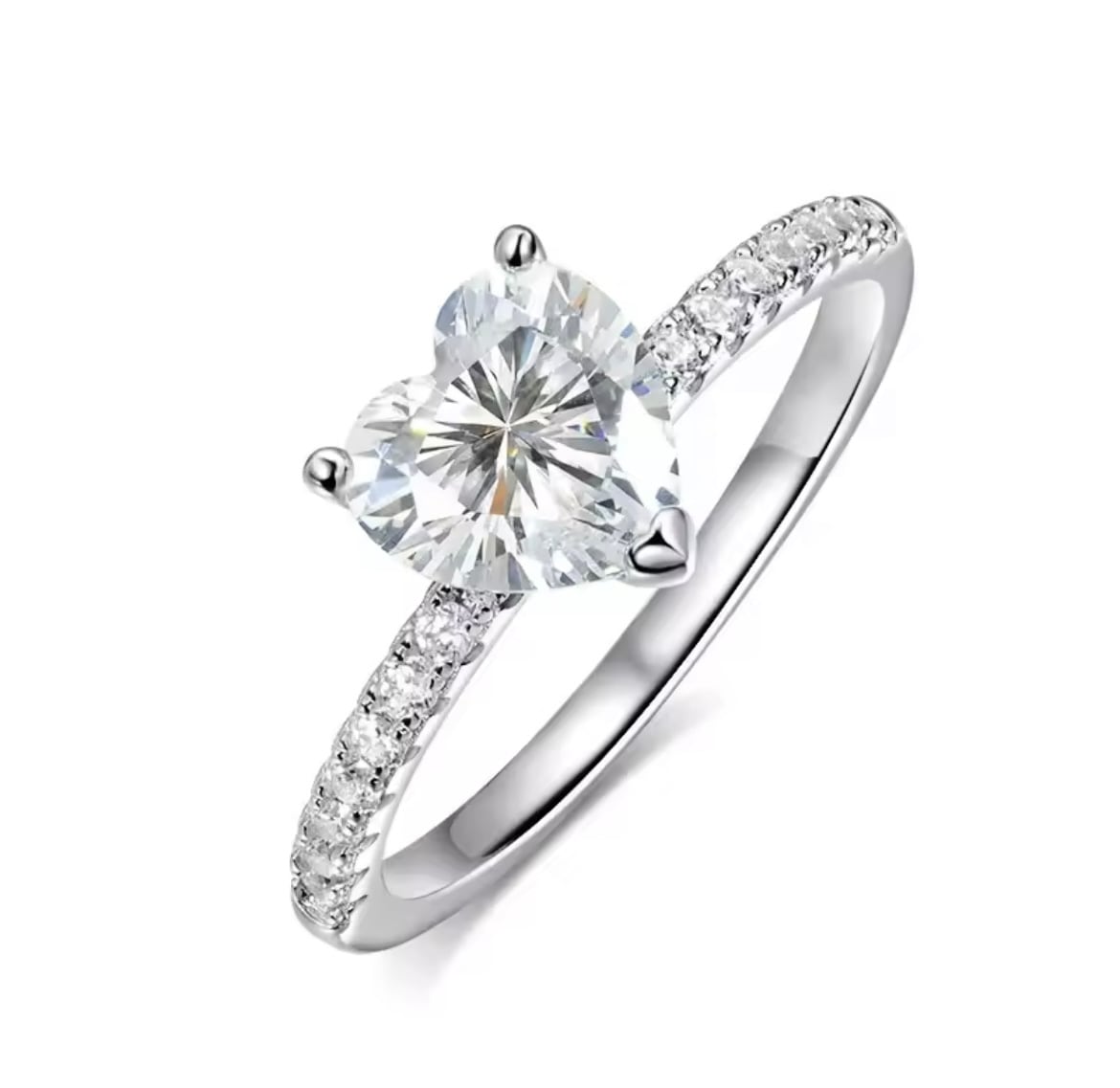 センターに**1カラット(約6.5mm)**のハートカット・モアサナイト。