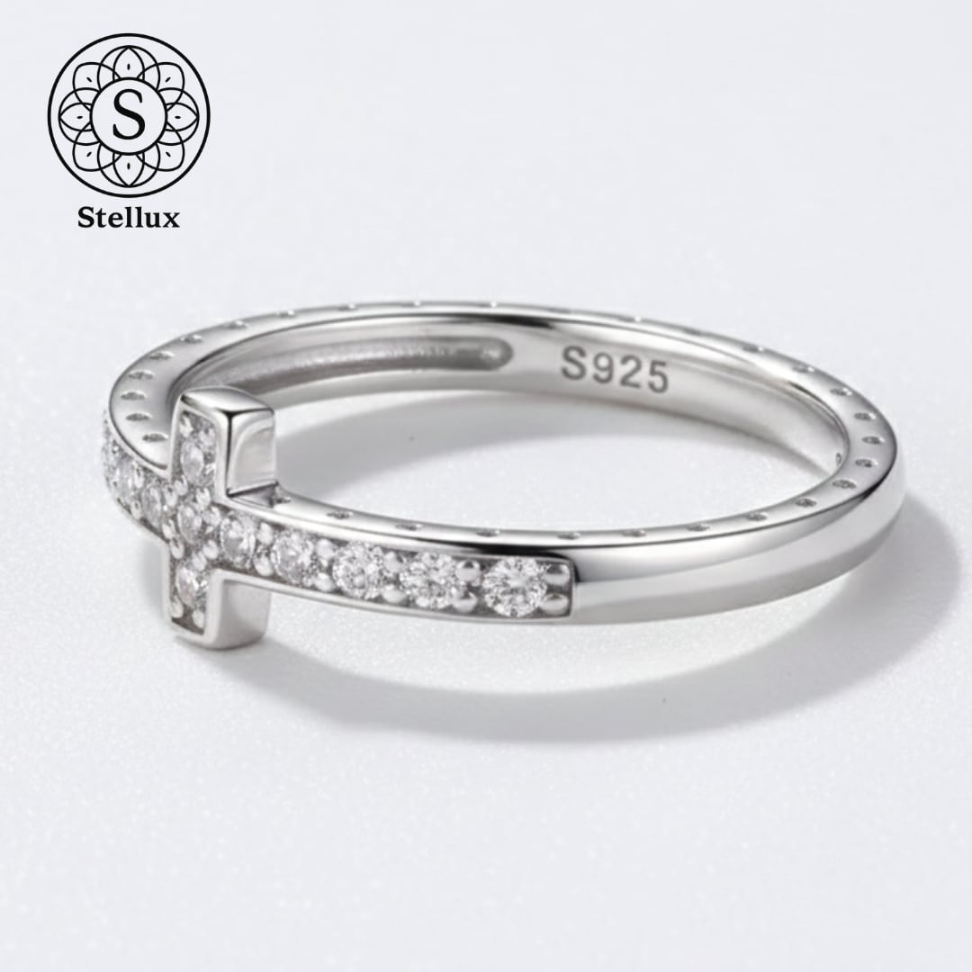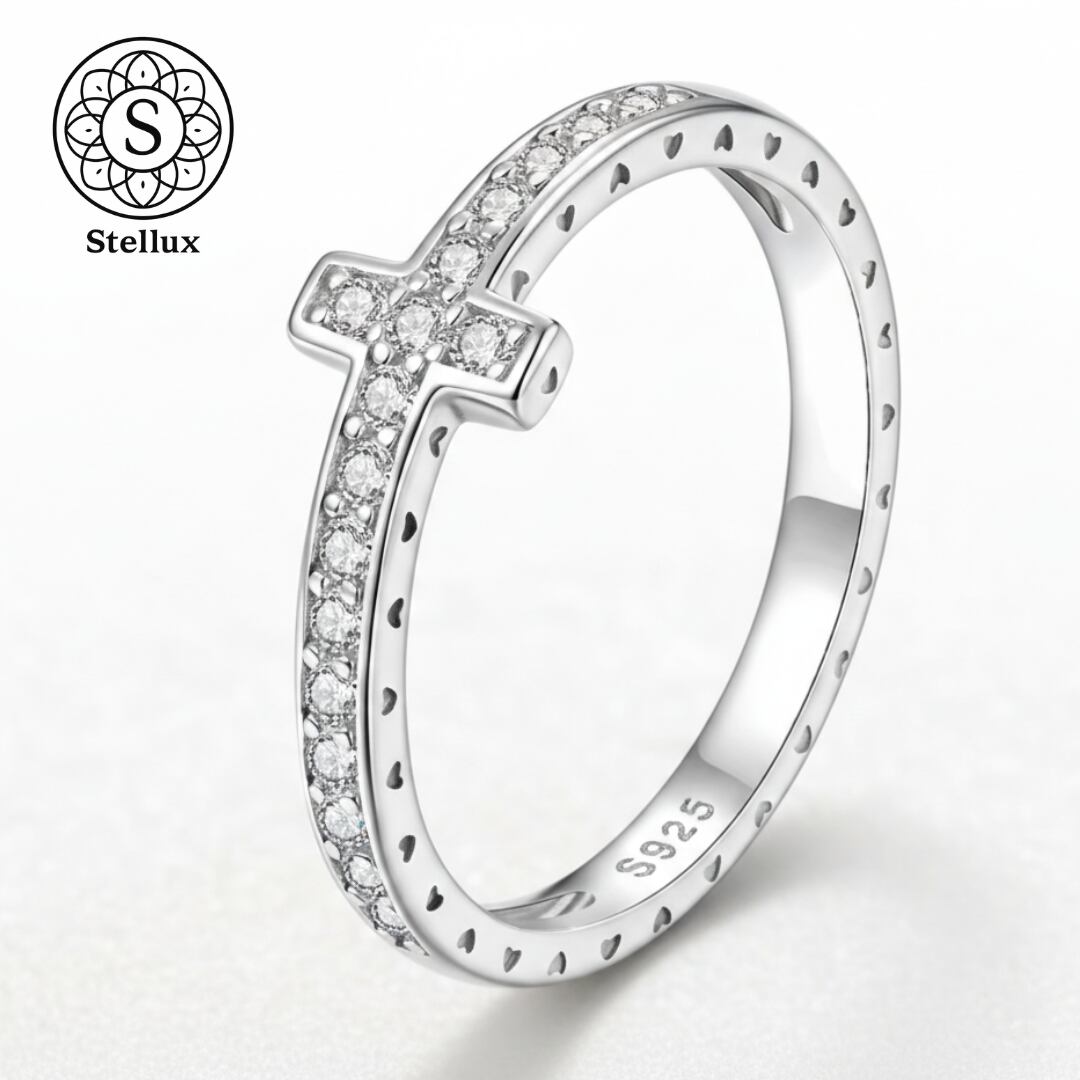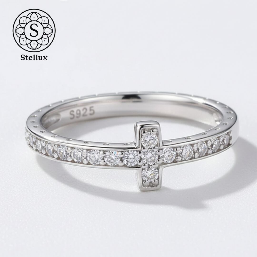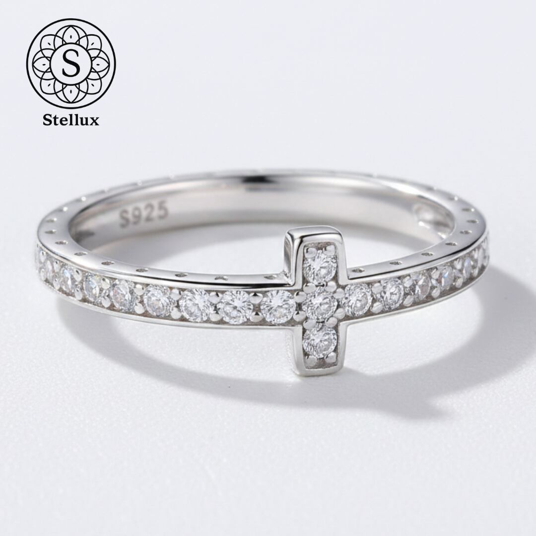 Stellarux Pavé Cross Ring / Moissanite & Silver 925