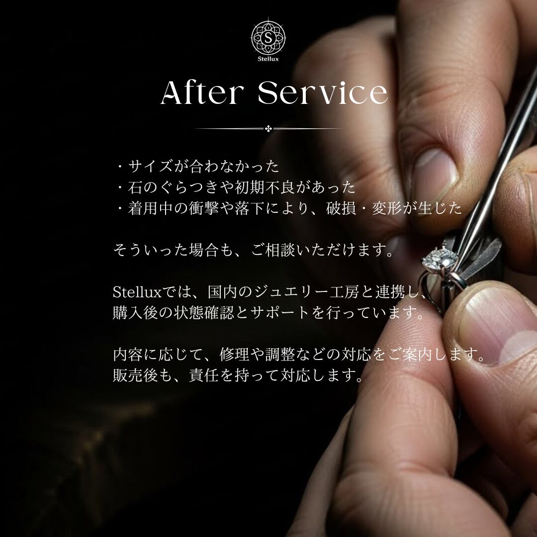 • Stone: モアサナイト(Dカラー相当 / VVSクラス)