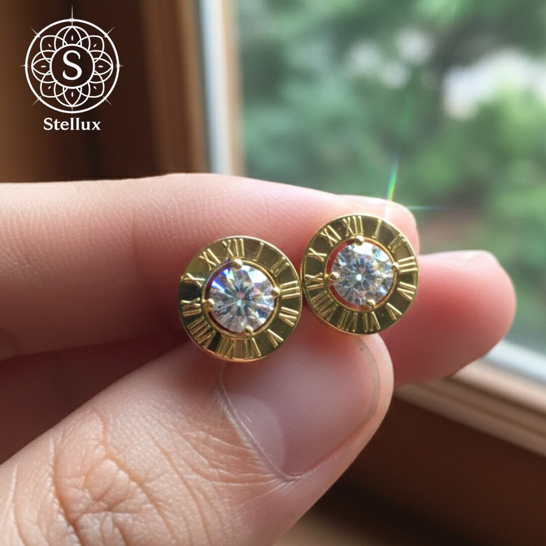 そのリッチな黄金に、Stellarux(ステラックス)の厳選したモアサナイトを、知性を象徴する「ローマ数字」のベゼルで包み込みました。