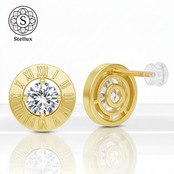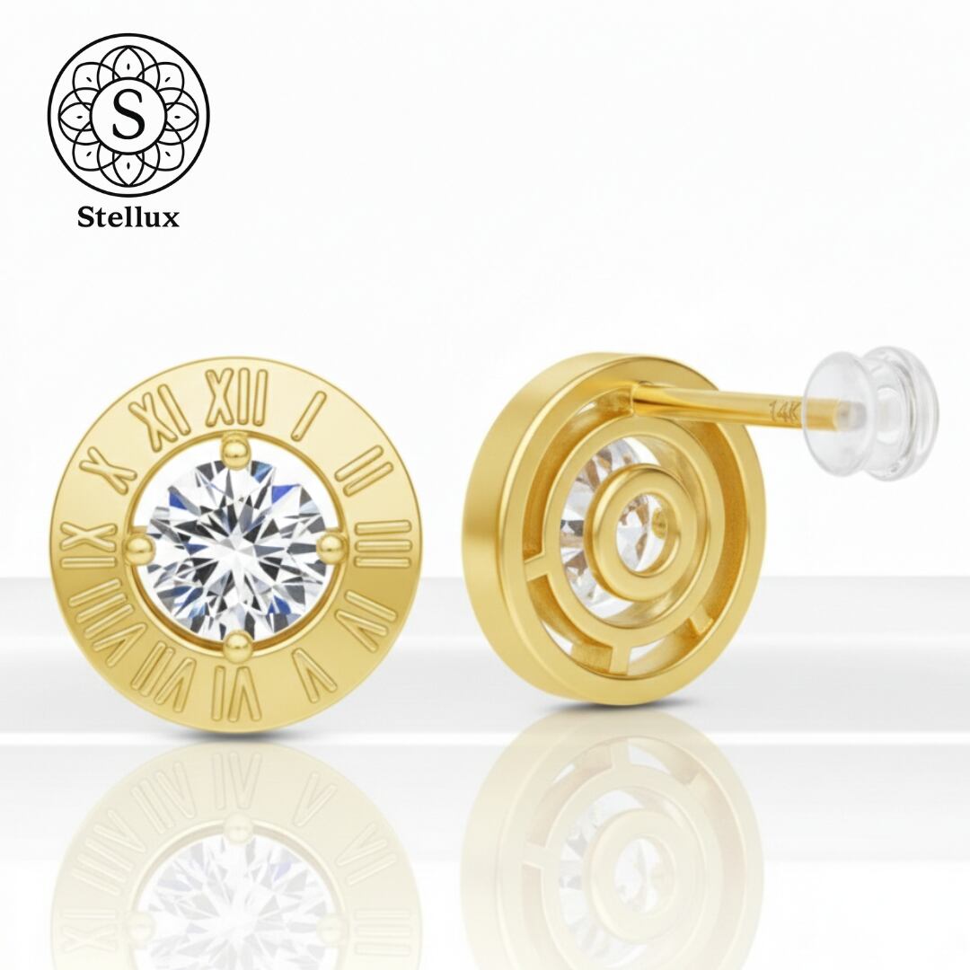 Stellarux 14K Gold Roman Numeral Stud Earrings / 1.0ct Moissanite