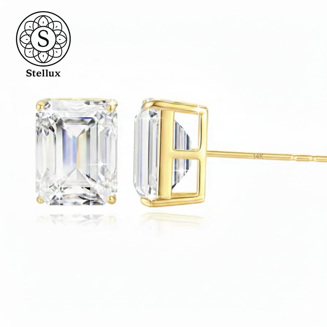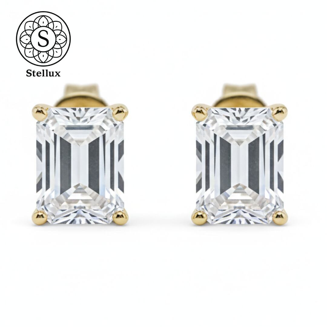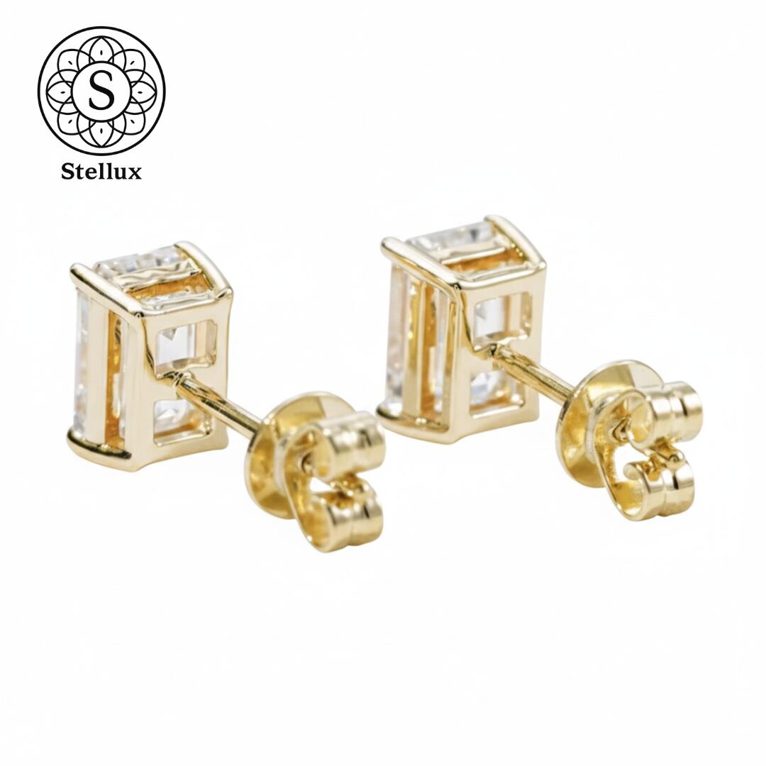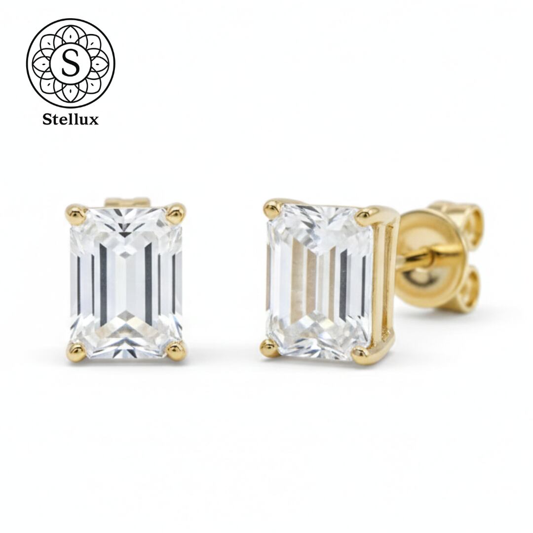 Stellarux 14K Gold Emerald-Cut Stud Earrings / 1.0ct Moissanite (Au585)
