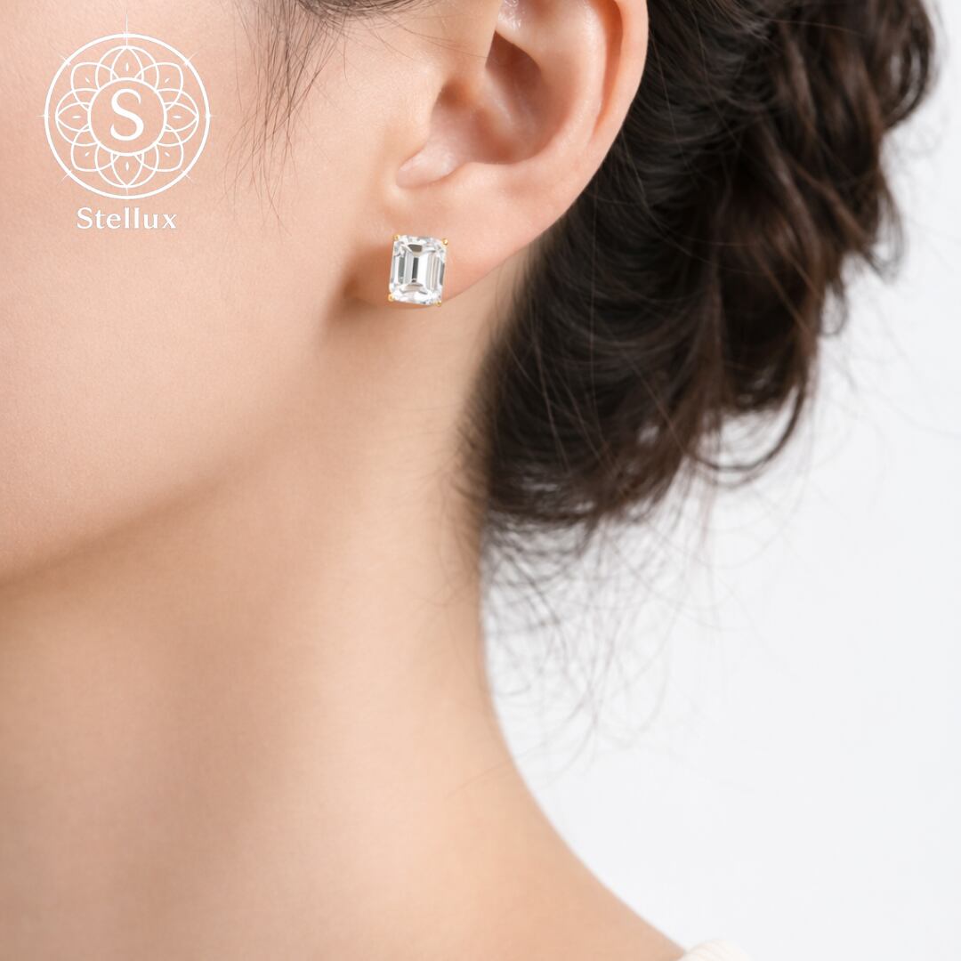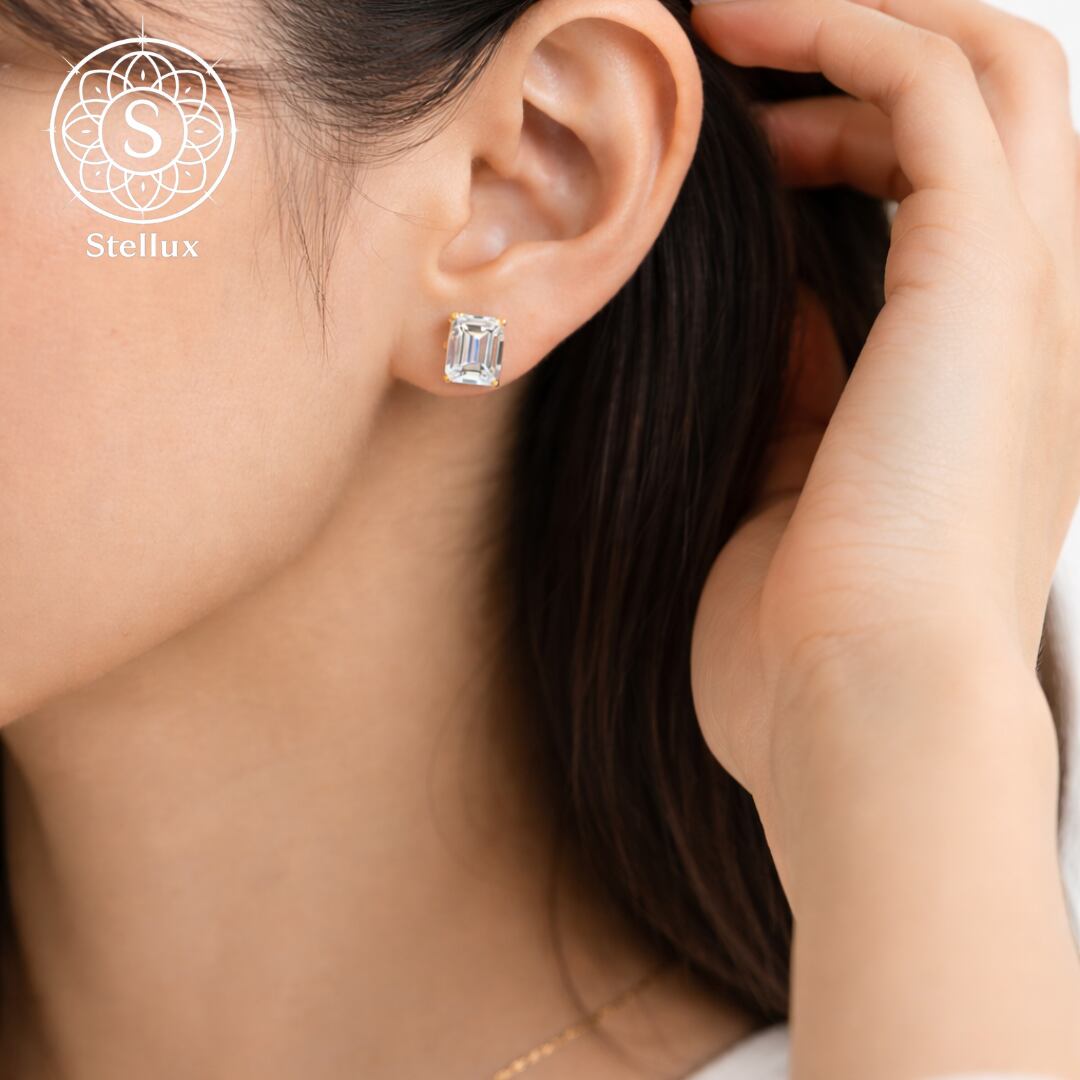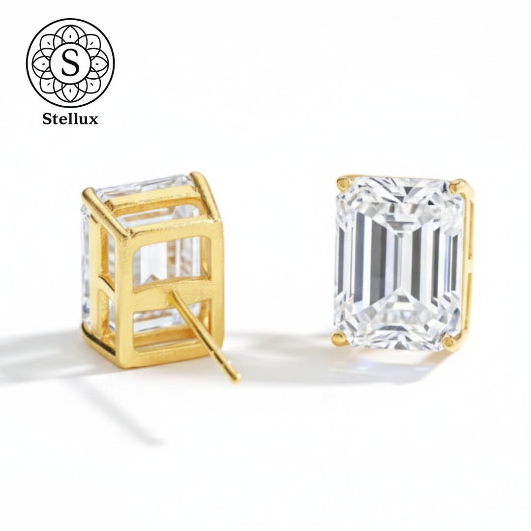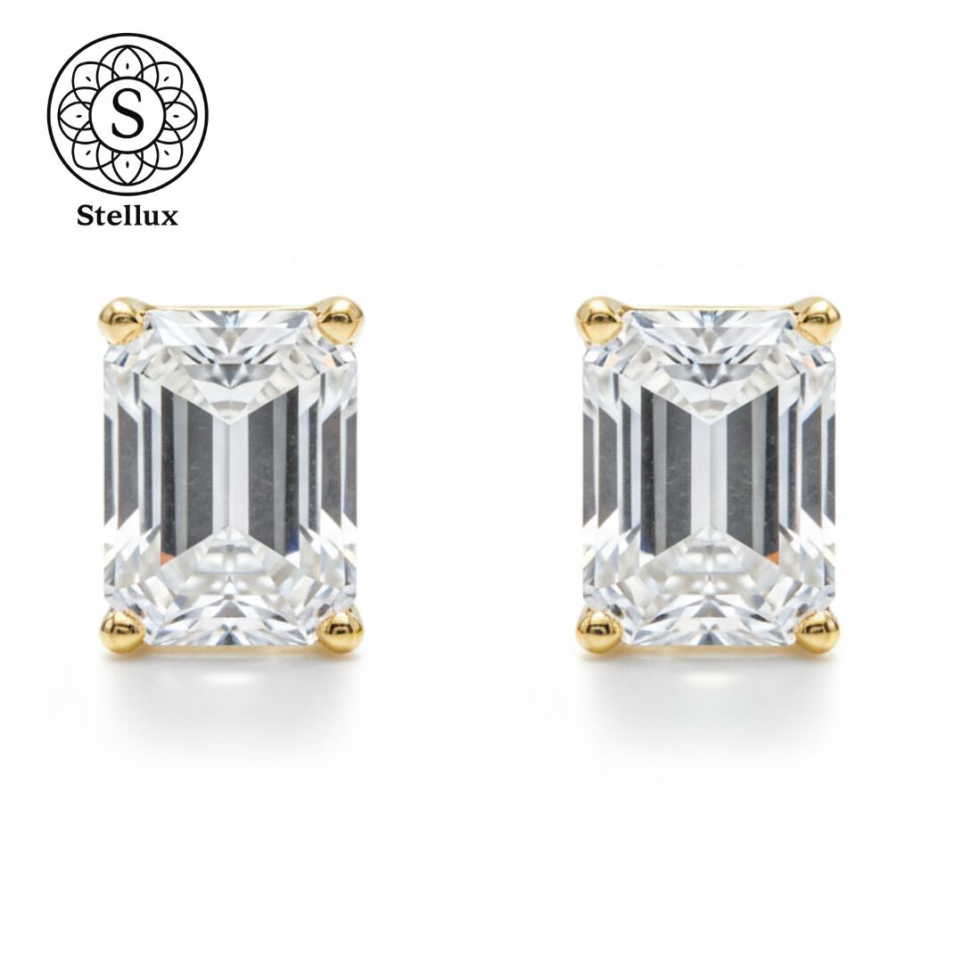 Stellarux 14K Gold Emerald-Cut Stud Earrings / 1.0ct Moissanite (Au585)