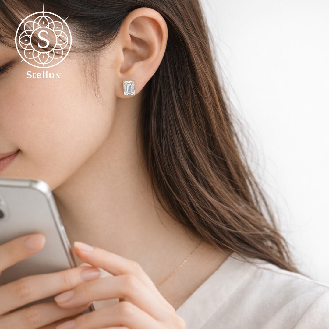 ダイヤモンド以上の輝きを誇りながら、どこまでも上品で落ち着いたその光は、顔まわりをシャープに、そして都会的な印象へと導きます。